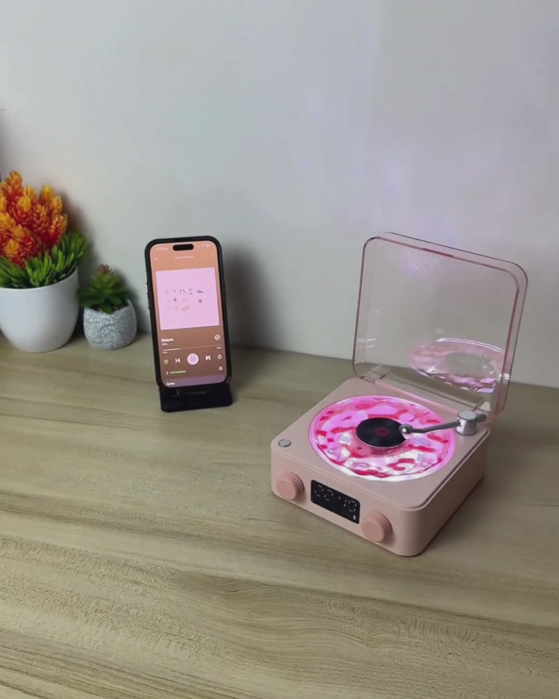 Vinyl & Bluetooth in einem, 4 Naturklänge mit Sleep-Timer, Akku für überall. Ersetzt Lautsprecher, Nachtlicht und Einschlafhilfe – spart Platz, Kabel und Nerven.